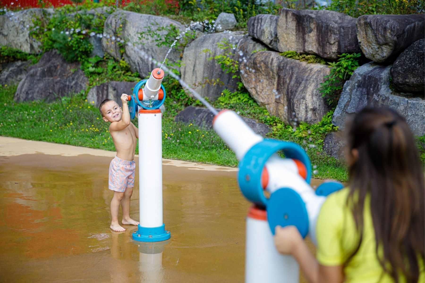 Un plan d’eau pour se rafraichir les nombreux modules de jeu éclaboussent